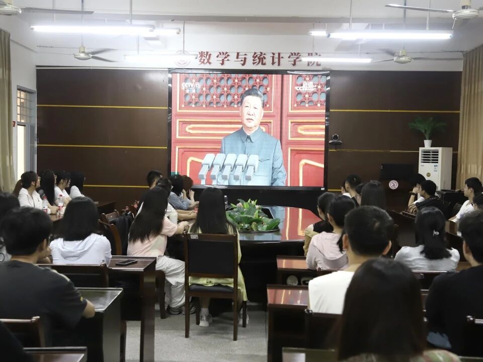 2025年是中国人民抗日战争暨世界反法西斯战争胜利80周年,今日党中央、国务院在北京天安门广场隆重举行阅兵仪式,这是全面推进中国式现代化进入新征程的首次阅兵,具有重大意义。为引导师生们铭记抗战历史、传承爱国精神、增强国防意识,数学与统计学院全体在校师生于砺志114观看阅兵仪式。
