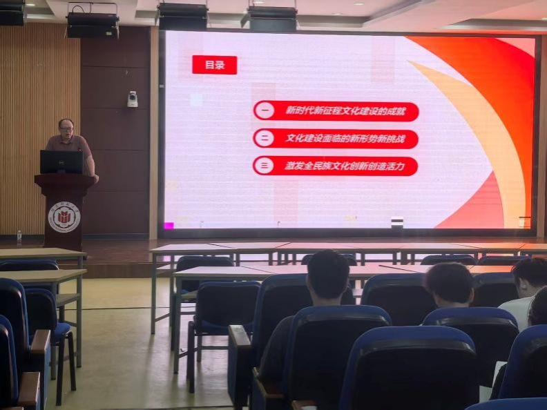 10月20日,院党委副书记、院长黄韩亮以《增强文化自信,激发全民族创新创造活力》为题,为我院22级、24级统计学专业学生讲授形势与政策课。