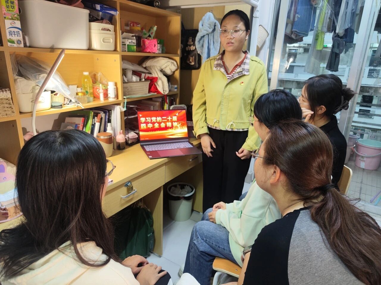在班级“主题班会宣讲”中,宣讲团成员结合数学文化节、学科竞赛等学院特色工作,生动讲解“青年学子如何在强国建设中找准定位”;在宿舍“微党建宣讲”中,宣讲团以“围坐交流”“问答互动”的轻松形式,聚焦同学关心的就业创业、考研深造、志愿服务等话题,解读党的二十届四中全会关于教育公平、人才培养、青年发展的部署要求,让学习阵地前移、学习形式创新、学习氛围浓厚,让党的二十届四中全会精神学习覆盖全员、贯穿全程,切实将学习热情转化为实际行动。