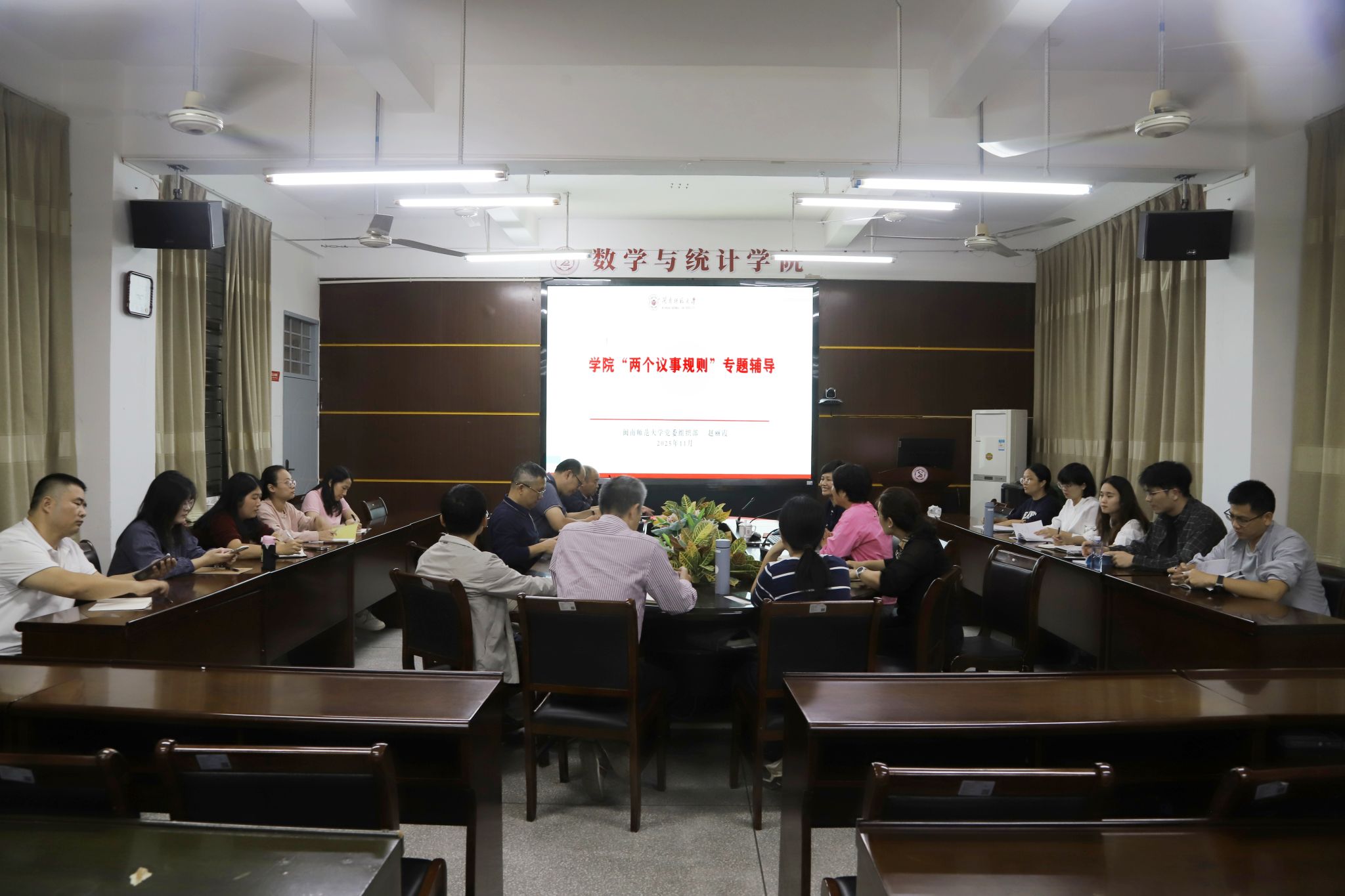 11月5日下午,数学与统计学院邀请校党委组织部部长赵丽霞开展学院“两个议事规则”专题辅导会,会议由院党委书记陈晶莹主持,学院领导班子、行政人员及省级学科平台负责人参加会议。