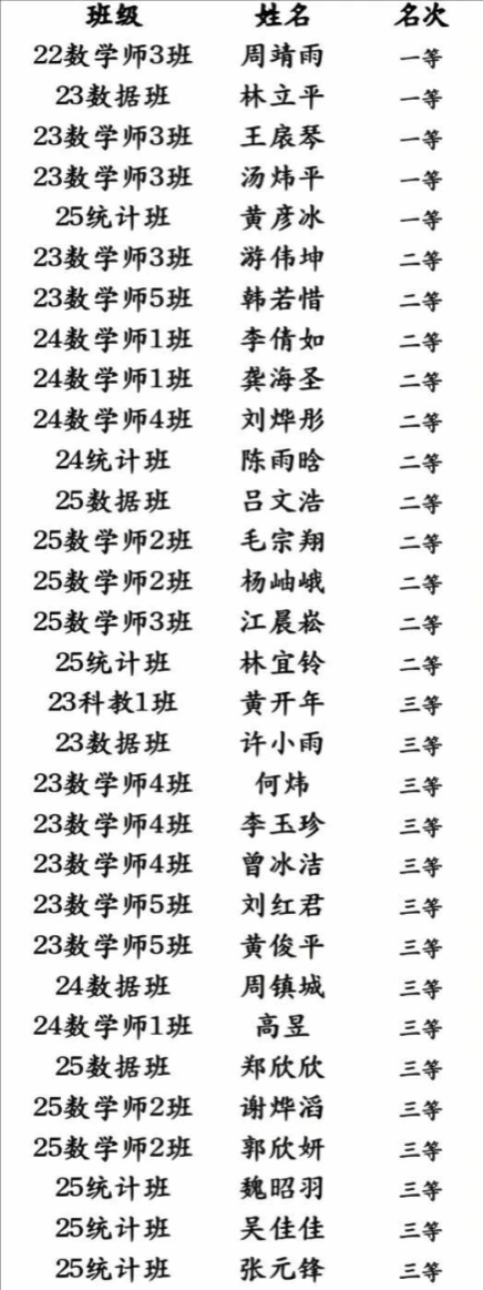 校赛选拔获奖名单