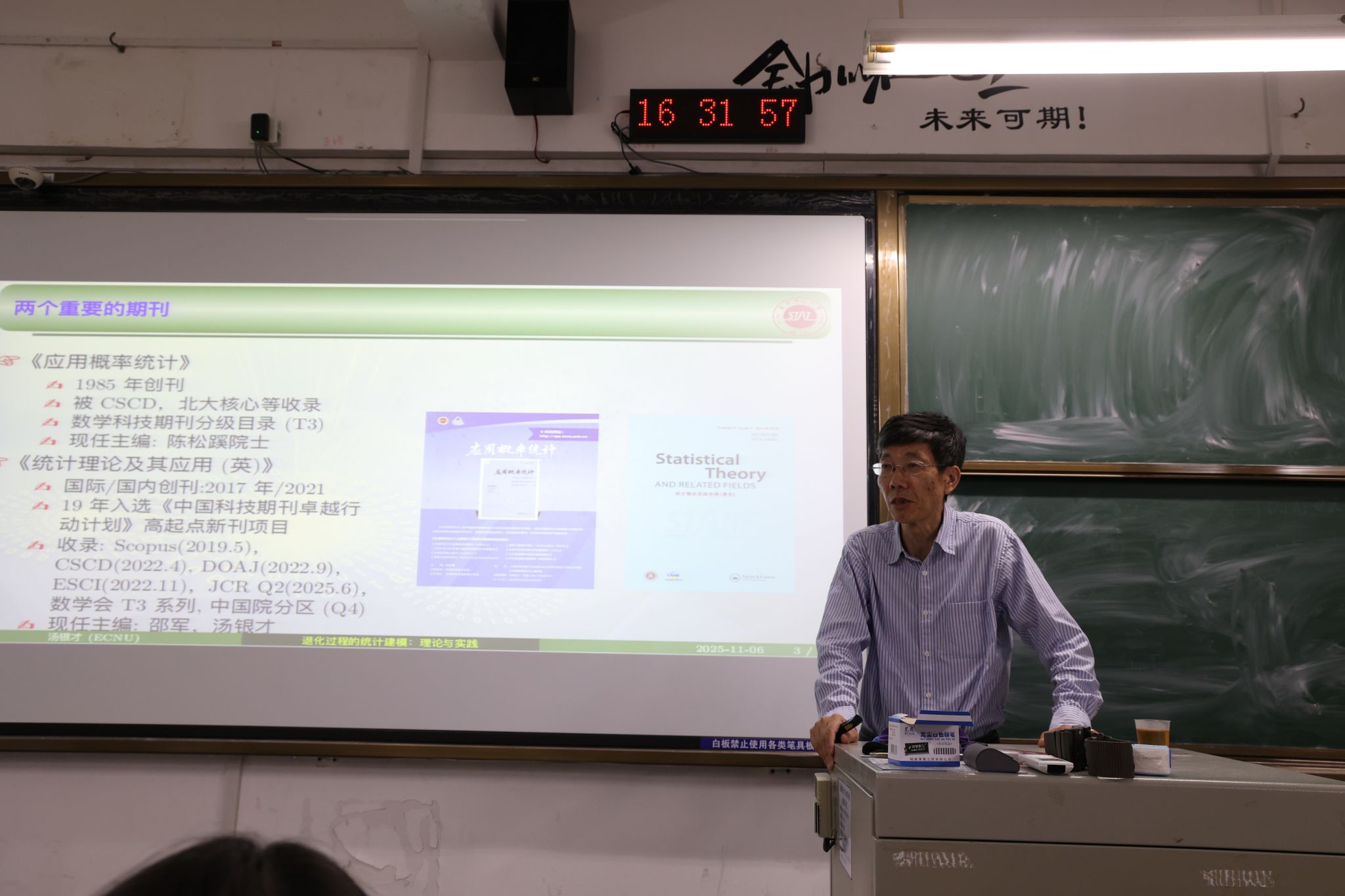 应我院邀请,11月5日,华东师范大学统计学院汤银才教授在砺志楼303和砺志楼114分别作了题为《退化过程的统计建模:理论与实践》和《面向重大战略需求,积极开展横向研究》的讲座。相关师生聆听了此次讲座,讲座分别由施建华教授和黄韩亮院长主持。相关师生聆听了此次讲座,讲座由施建华老师主持。