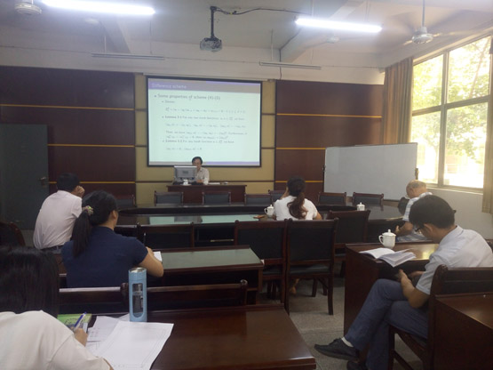 在报告中,王晓峰副教授首先介绍满足初值条件和边值条件的Rosenau-Kdv-RLW能量守恒方程和方程解的存在性和有界性;其次介绍存在性和有界性的证明过程,数值模拟计算方程解的存在性和有界性,解的一些性质,如格式不随时间和证明过程的变化而变化,算法证明解的精度保持为2时,能量在不同时间保持守恒,二级流体传热的数值解法和能量守恒;最后介绍在Cu-水纳米流体的应用(纳米流体强化传热数值模拟)。报告结束后,在座的老师和学生就相关研究问题进行了探讨和交流。