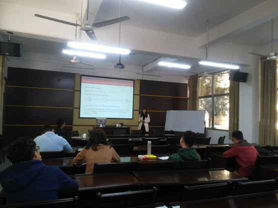 在报告中,陈雪蓉副教授首先介绍了现实生活中数据的三种缺失机制,即完全随机缺失、随机缺失以及不可忽略缺失,并通过简单的例子演示、引出在不可忽略缺失数据下的联合分布;其次介绍了参数方法与非参数方法对于分布进行估计的区别和联系,并指出两种方法的优缺点;接着讲述了经验似然的思想原理,得到一些相关的分布函数性质;最后通过统计模拟,进一步验证了所提出的在不可忽略缺失数据下的拟似然函数估计确实是优于其他方法,并通过该方法对一个医疗费用的数据进行分析应用。整个报告由浅入深,将深奥的前沿统计理论及精巧的统计思想完整地做了系统展示,让现场的师生受益匪浅。报告结束后,在座的老师和学生就相关研究问题进行了探讨和交流。