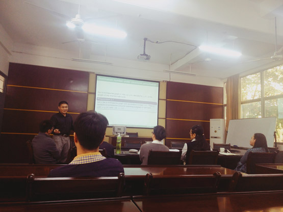 在报告中,于广龙教授首先介绍控制树的概念及控制树下的最小特征值;其次,介绍改变控制参数时单圈图中控制树的变化和控制树大小不变时,控制参数下控制树结构的变化;最后考虑控制树小时,特征根的情况及其个人在该分支所做的贡献。报告结束后,在座的老师和学生就相关研究问题进行了探讨和交流。