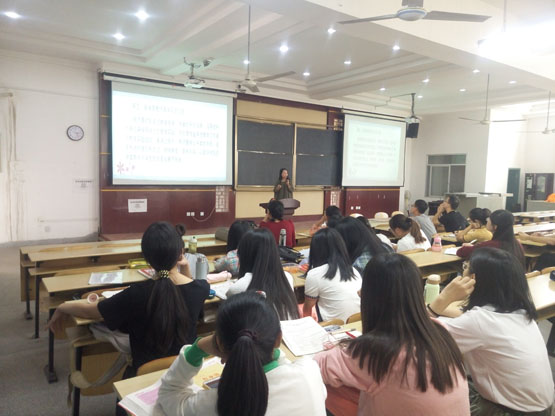 在报告中,陈慧蓉老师依据讲课的基本顺序,首先介绍小学数学在上课前教案的准备,包括选题的方法,如何准备新颖的ppt进行教学等;然后重点介绍了课堂知识的引入,包括情景等并着重说明课本的重要性,如本节课的课题、插图等,要求老师不管在讲图还是在讲题,都要用审题的角度带着学生进入学习;其次,介绍了板书的设计问题及课堂结尾的总结,并用一些例子分别说明不同问题的板书与总结多样性;最后,着重说明不同的内容备课的不同,并且说明报告中所讲的方法只是一小部分,只有用心准备,才能将不同的方法用于不同的课题中。报告结束后,在座的老师和学生就相关研究问题进行了探讨和交流。