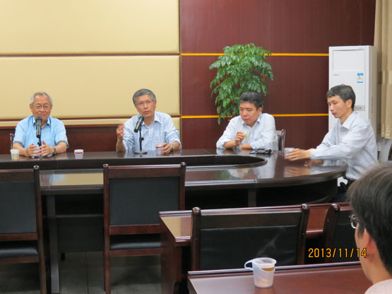 下午五点,陈关荣教授、美国加州大学伯克利分校蔡少棠教授和海军工程大学吴晓锋教授在砺志楼114会议室为我院师生开了一场“学科与科研”座谈会,座谈会上,三位教授就“如何提出好的科研问题?”、“是否赞同多方面的研究?”、“混沌研究已近饱和,未来的发展趋势?”、“年轻老师出境访问事宜”、“课程学习与论文写作之间的关系?”、“怎样面对一个研究很久了而无进展的课题?”等问题进行了交流。
