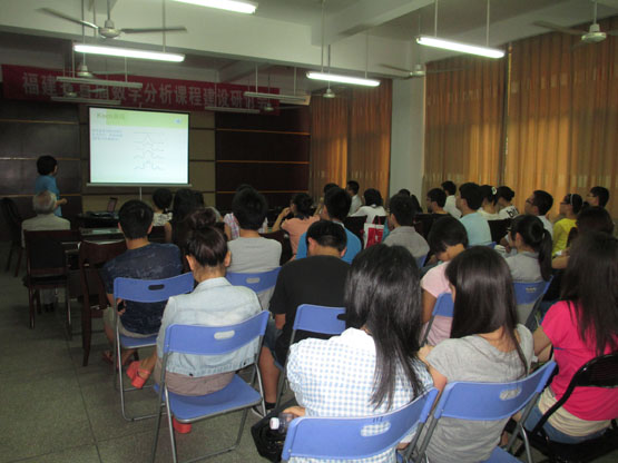 报告会上,吴教授首先介绍了“经典分形曲线—Koch曲线的生成与特征”、“分形集合的基本特征及其他分形例子”、“什么是分形维数?”、“分形几何的应用及分形图欣赏”和“分形这门学科的发展”等内容。然后,简单介绍了华南理工大学理学院数学系分形几何的师资队伍,并表示欢迎我系学生报考华南理工大学理学院研究生。