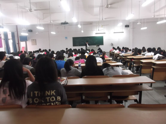 报告会上,庄教授介绍了代数的历史发展过程,讲述了 “什么是高等代数”、“高等代数的方法”、“高等代数的价值”和“怎样学好高等代数”等内容;庄教授还和同学们进行了互动,并耐心、详细的回答了同学们所提的问题,现场气氛轻松而热烈。