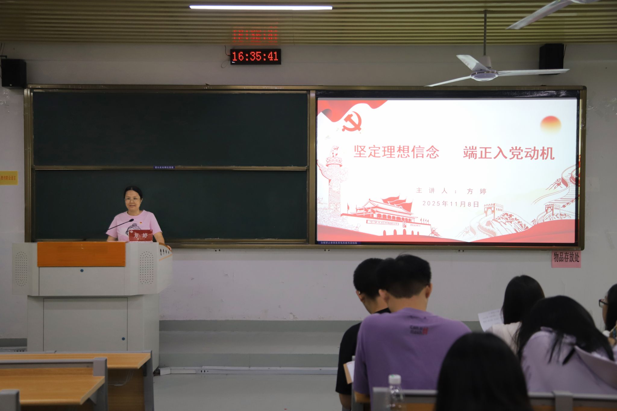 11月9日下午,院党委组织员方婷于砺志楼130教室,为入党积极分子培训班学员讲授题为《坚定理想信念,端正入党动机》的专题培训。