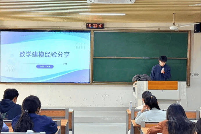 数学建模竞赛获奖者分享会中,由在2025年全国大学生数学建模竞赛中斩获省级一等奖的薛康与胡萍萍担任主讲。薛康以数学建模的核心定义为切入点,不仅分享了竞赛核心要点,更是全面覆盖赛前实战训练、赛中时间与任务管理、赛后复盘总结的全流程经验,为同学们提供了兼具理论性与实操性的备赛指南。胡萍萍将目光聚焦于论文撰写板块,重点阐述如何清晰、精准地呈现建模思路与研究成果,同时分享了“论文手”如何与“建模手”、“代码手”高效协作的技巧,为团队参赛提供了宝贵参考。