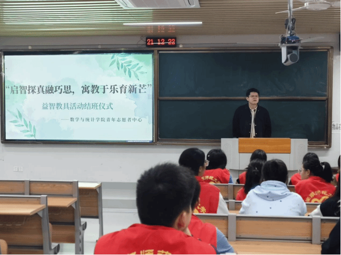 12月20日,数学与统计学院青年志愿者中心在砺志224举办益智教具活动结班仪式,我院青年志愿者中心指导老师朱旭泽出席本次活动。